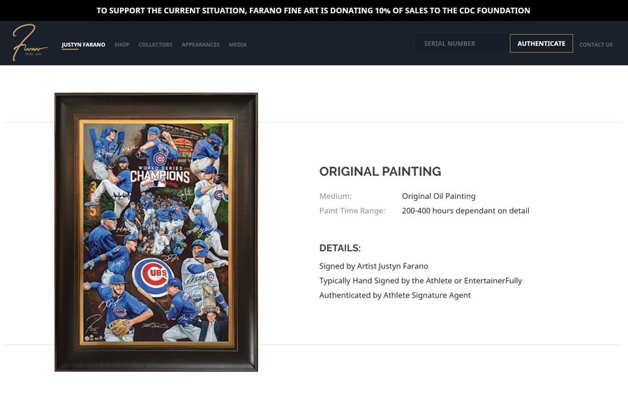 Farano’s art has been licensed by the Baseball Hall of Fame since 2014 and he was named Official Artist of the Baseball Hall of Fame in 2017.