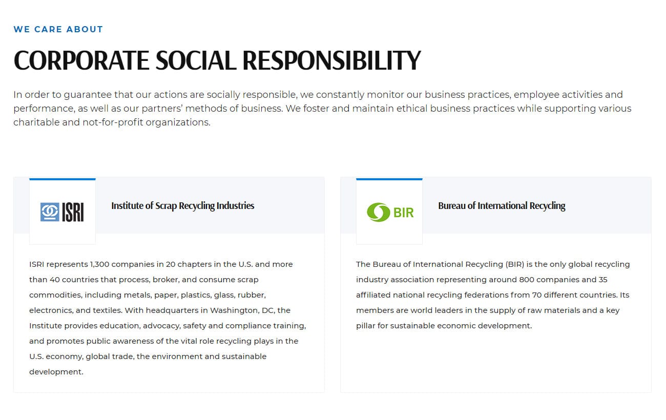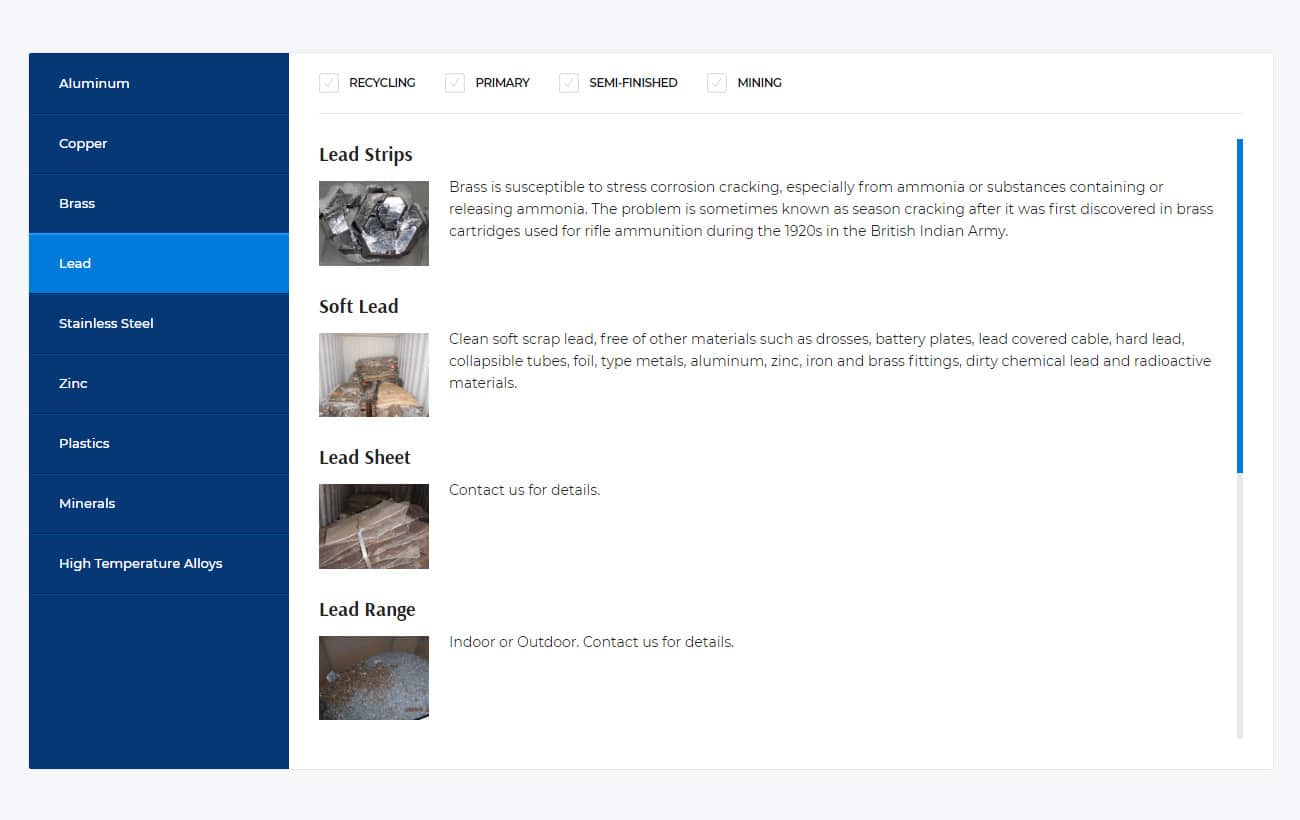 The company is dynamically involved in worldwide trading primarily focused on non-ferrous (Aluminum, Copper, Brass, Zinc, Lead, Stainless Steel among others) scrap and semi-finished products, in accordance with international quality standards and environmental regulations. This exchange provides dynamic cross-marketing and synergies between consumers and suppliers worldwide.