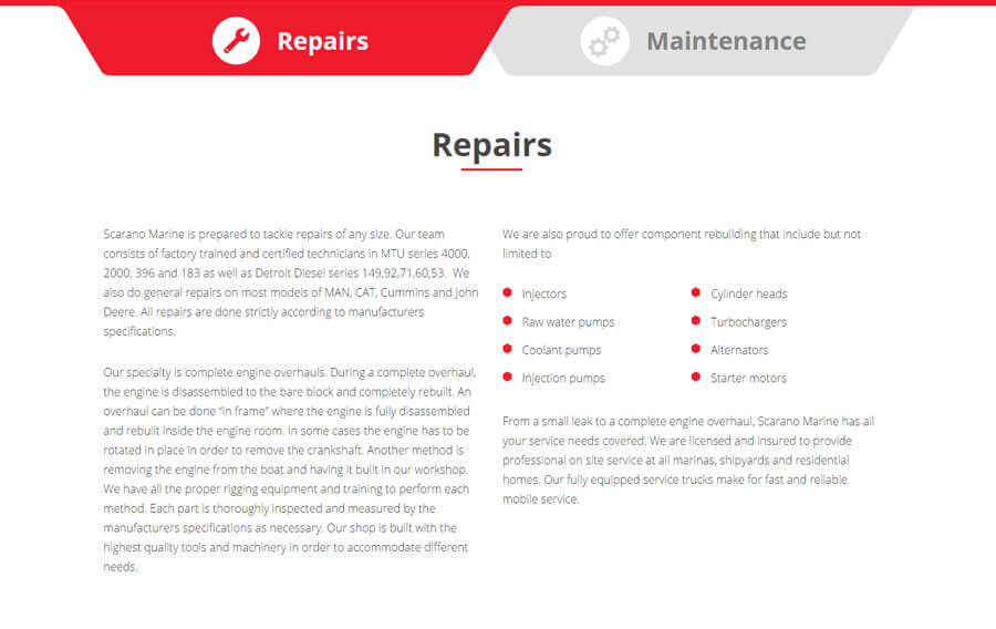Scarano Marine is a premier marine diesel engine service and repair facility. Composed of marine engineers and factory certified service technicians, they offer first class dependable service.