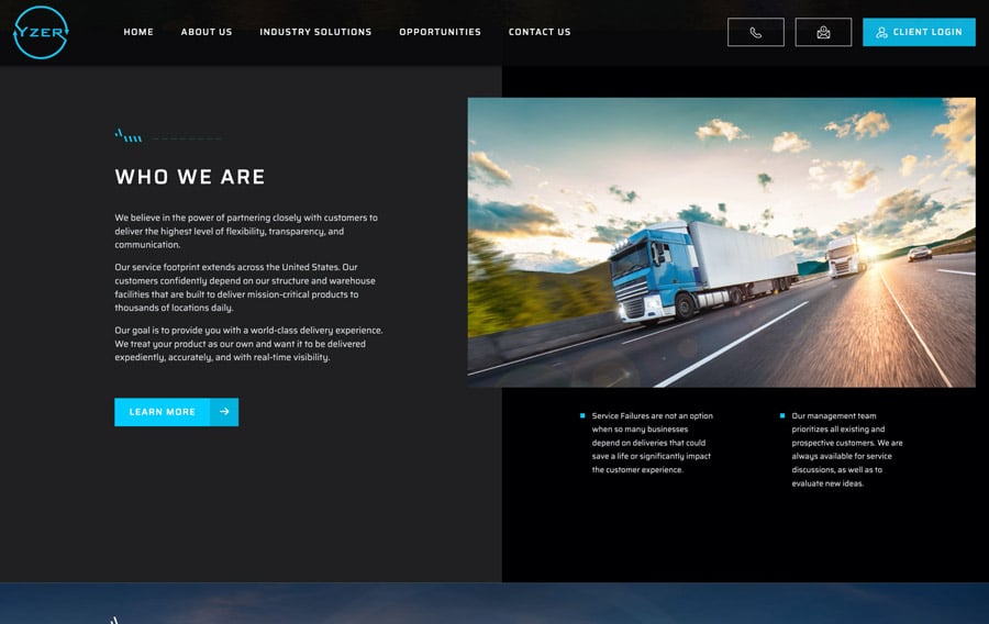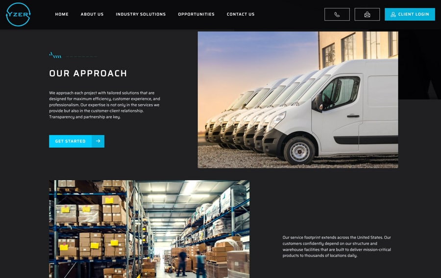 Yzer is a logistics service leader. In everything they do, service and relationship come first. Their team is flexible, dedicated, communicative, and aware. They stand in the trenches with their customers and do whatever it takes to ensure success.