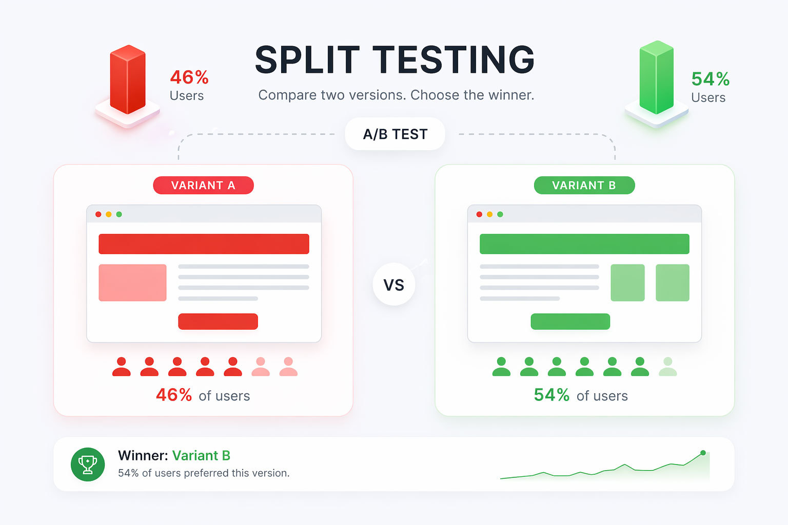 A/B testing, which is also known as split-testing allows you to compare two different versions of a web page to determine which converts visitors better.
