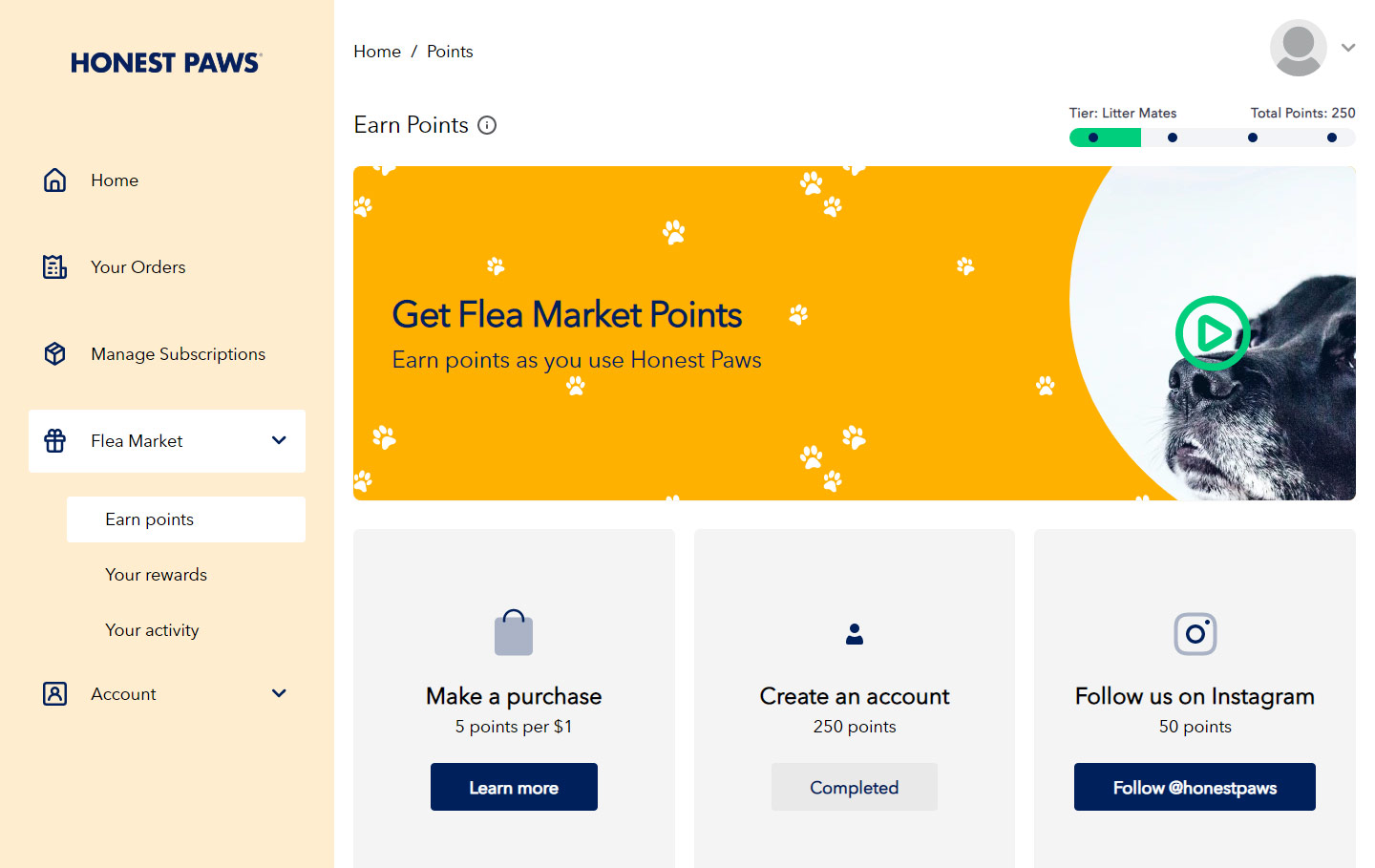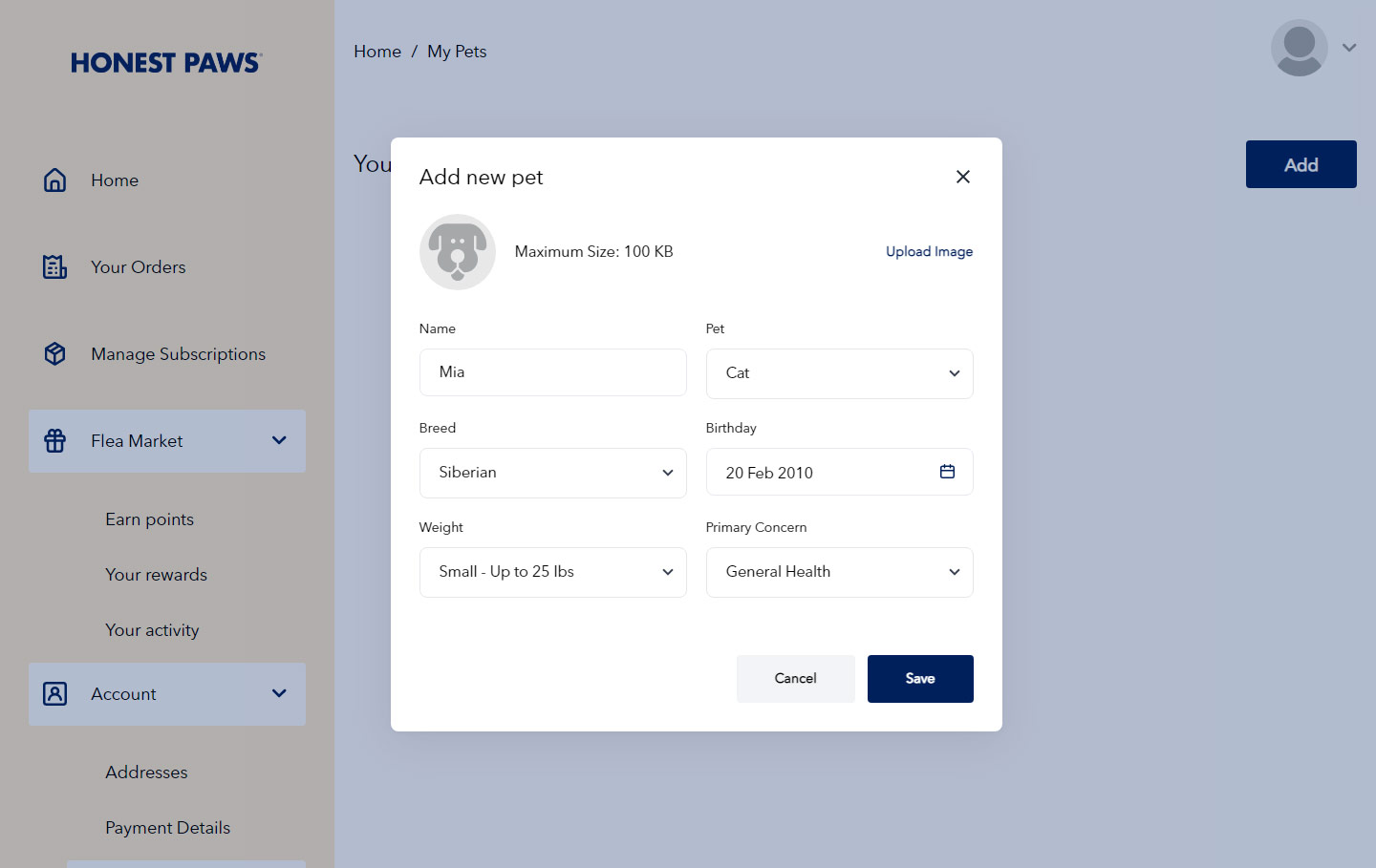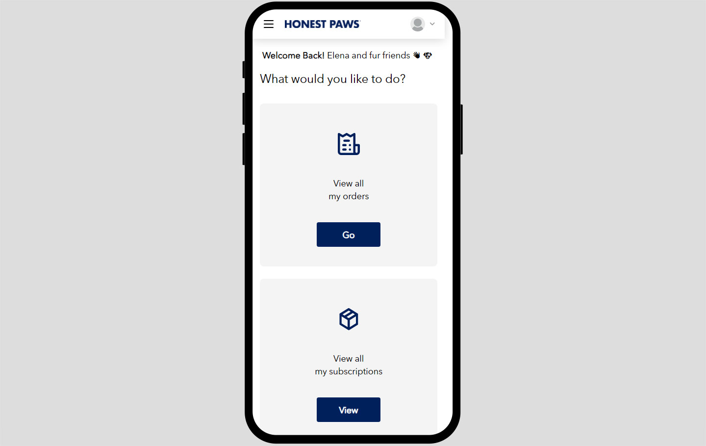 Headless My Account Project for Honest Paws