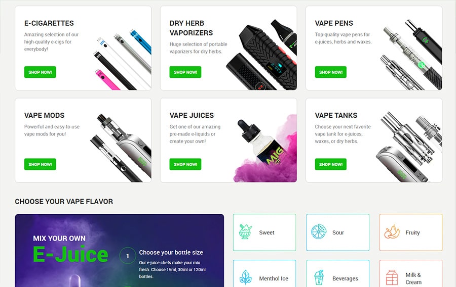 Mig Vapor is a company that sells e-cigarettes, vaporizers, e-liquids and other vaping accessories. They developed their products as an alternative to smoking traditional cigarettes. The founders pride themselves on high-quality products and continuous innovation to improve those products.