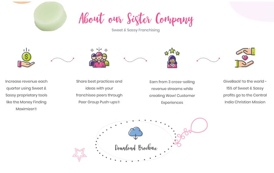 They have since grown to 18 franchise locations with a full-scale products company, with two divisions: The Naked Bomb and Sweet & Sassy Packaging.