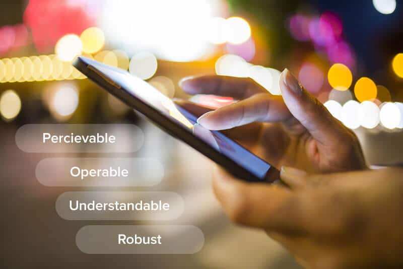 The Web Content Accessibility Guidelines also known as WCAG, are a set of accessibility standards to help guide web content producers in making their work more accessible to all, including users with disabilities. Produced by the World Wide Web Consortium, using the WCAG is the best way to make your website useful to all users. The guidelines are not an all-inclusive list of issues that disabled web users face, but they are internationally recognized and adopted standards. The guidelines explain how to solve several issues that users with disabilities face. WCAG 2.0 is the technical standard featuring guidelines containing testable “success criteria” that can be used to measure the usability of websites. The benefit of a principled approach like P.O.U.R is the emphasis on understanding your users.